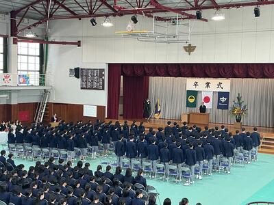 澄みわたる青空のもと、47回生135名が無事に卒業式を迎えました。式では、一人ひとりが堂々と卒業証書を受け取り、在校生や保護者、教職員から温かい拍手が送られました。3年間の学校生活で培った友情や努力の積み重ねが、晴れの日の表情にあふれていました。卒業生の新たな門出を心より祝福するとともに、今後の活躍を期待しています。