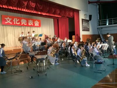 文化発表会は、前半に展示発表、後半にステージ発表という二部構成で行われました。展示発表では、美術の作品や各教科の学習成果が校内に彩り豊かに並び、生徒たちの創造力と努力が目を引きました。後半のステージ発表では、2年生は「トライやる・ウィーク」、3年生は「修学旅行」の発表があり、会場は大きな拍手に包まれました。文化発表会の締めくくりには吹奏楽部による演奏が行われ、迫力ある音色が体育館いっぱいに響き渡りました。生徒一人ひとりが輝いた、思い出に残る一日となりました。