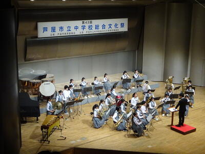 本日開催された芦屋市中学校総合文化祭に、本校から合唱コンクール金賞を受賞した3年4組と吹奏楽部が出演しました。3年4組は心をひとつにした美しいハーモニーで会場を魅了し、吹奏楽部は迫力ある演奏で会場を盛り上げました。特に吹奏楽部の3年生にとっては中学校生活最後のステージとなり、仲間とともに音楽を創り上げてきた日々の集大成として、感動的な演奏を届けてくれました。