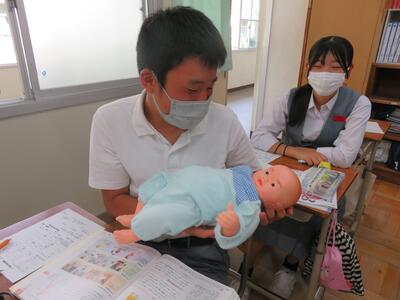赤ちゃん人形を抱っこして、産まれたての赤ちゃんがどれくらいの重さかを体感しました。