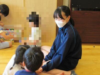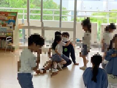 園児や保護者のみなさまの前での自己紹介。緊張気味でしたが、しっかり挨拶ができていました。立派でしたよ!