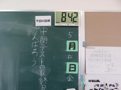 どのクラスの黒板にもみんなを励ます言葉が書かれています!「全力を尽くせ」「気持ちを切り替えてがんばろう」等々。今日は2教科だけです。力を出し切ってください!