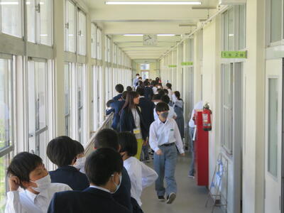 朝礼後、廊下ではいつものようにたくさんの生徒が寛いでいましたが、誰も呼びかけをしなくても自然と、時間を気にして教室へ戻っていきました。