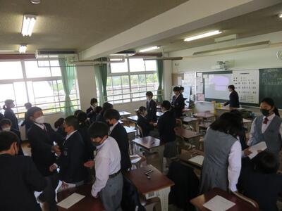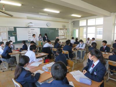 3時間目は、6月に開催される生徒総会に向けて、各学級で生徒会執行部や各専門委員会からだされた今年度の活動計画に対して討議を行いました。