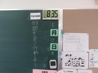 いつもは生活委員会がチャイムでの着席を各クラスで呼びかけてくれていますが、今日は一人ひとりが「時間」を意識しての行動が必要となります。