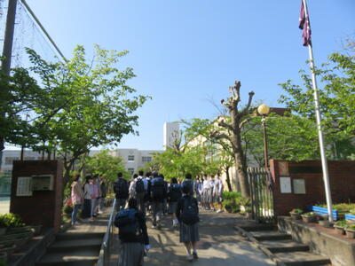 8時の正門開門と同時に、生徒たちは今日も元気に登校してきました。