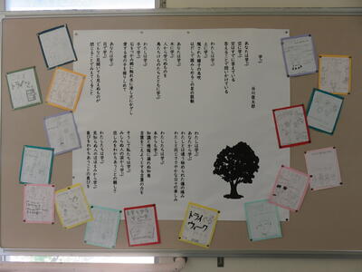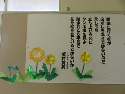 各学年の廊下には、先生たちからの願いが込められれた詩が掲示されています。