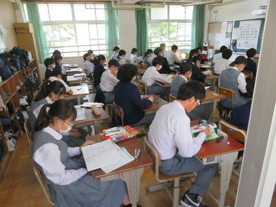 今日は1,2年生が中間考査、3年生が実力考査の1日目です。