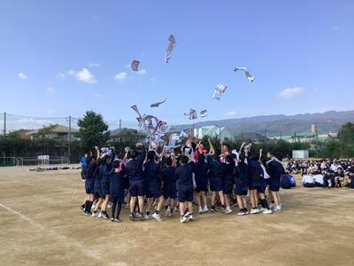 第47回スポーツ大会が、秋晴れの空の下、盛大に開催されました。生徒たちは日頃の練習の成果を発揮し、全力で競技に臨みました。リレーや団体競技では、仲間との絆やチームワークが光り、観客席からは大きな声援が送られました。市長、教育長、教育委員の皆様にもご来場いただき、温かい激励のお言葉を頂戴しました。地域の方々や保護者の皆様にも多数ご来場いただき、学校全体が一体となって盛り上がる一日となりました。生徒たちの笑顔と達成感に満ちた姿が印象的で、思い出に残る大会となりました。