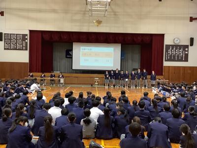 今年度からの取り組みである潮見改革の投票が行われ、賛成多数という結果となりました。このように潮中生全員で、過ごしやすい学校を自ら創り上げる気持ちを大切にしてほしいと思います。