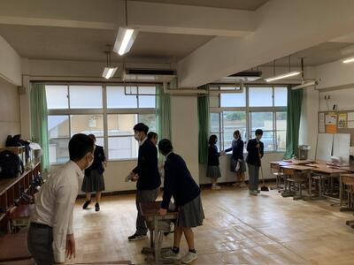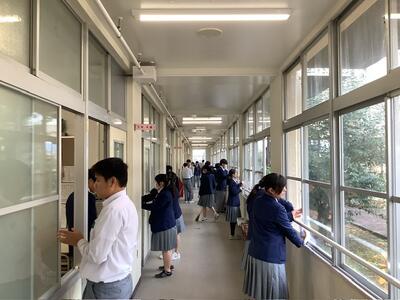 全校生徒が参加する学期末恒例の大掃除を行いました。2学期の学習や学校生活で日々使用してきた教室や廊下、特別教室などを、「使わせていただいたことへの感謝」の気持ちを込めて丁寧に掃除しました。ほうきや雑巾を手に、普段はなかなか手が届かない場所まで協力して取り組む姿が見られ、学校全体がみるみるうちにきれいになっていきました。