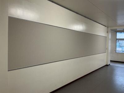3年生である47回生の皆さんからの卒業記念品として、校内に新しい掲示板が設置されました。場所は、1階のB棟とC棟をつなぐ渡り廊下です。生徒の皆さんが日々目にする場所であり、学校生活に関わるお知らせや作品紹介、進路情報など、さまざまな情報を共有する場として活用していく予定です。