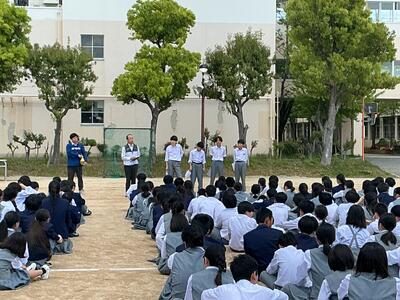 地域を守った勇者たち!! 投稿: ルーム管理者 (15:33) カテゴリー: 学校行事 先日校区内で、ボヤがありました。 そこに潮中生が駆けつけ、水筒の水で初期消火したということがありました。 自分たちの地域は、自分たちで守る! 8名の勇者に校長先生から感謝状がおくられました。 潮中生 すごいぞ!