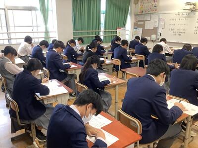 11月5日「津波防災の日」に合わせて、気象庁が全国一斉に実施した緊急地震速報の訓練に本校も参加しました。午前10時に防災行政無線の放送で緊急地震速報の訓練音が流れ、生徒たちは「シェイクアウト訓練」の手順に従い、「まず低く、頭を守り、動かない」の行動をとりました。教職員の指示のもと、全員が落ち着いて迅速に行動し、防災意識を高める貴重な機会となりました。今後も災害時に備えた訓練を継続してまいります。