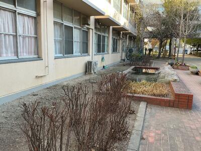 中庭が見違えるほど美しく整備されています。寒さの厳しい中、校務員さんがお一人で丁寧に作業を進めてくださり、伸びていた枝葉はすっきりと刈り込まれ、地面を覆っていた雑草や落ち葉もきれいに取り除かれました。整えられた中庭は、見ているだけで気持ちが晴れやかになります。生徒の皆さんには、ぜひ足を運んで、この変化を感じてほしいと思います。
